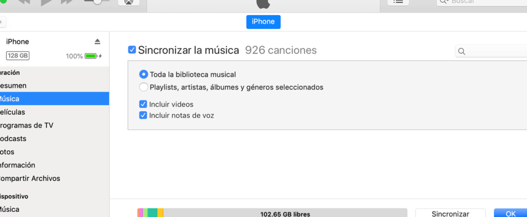Sincronización de música, videos y más